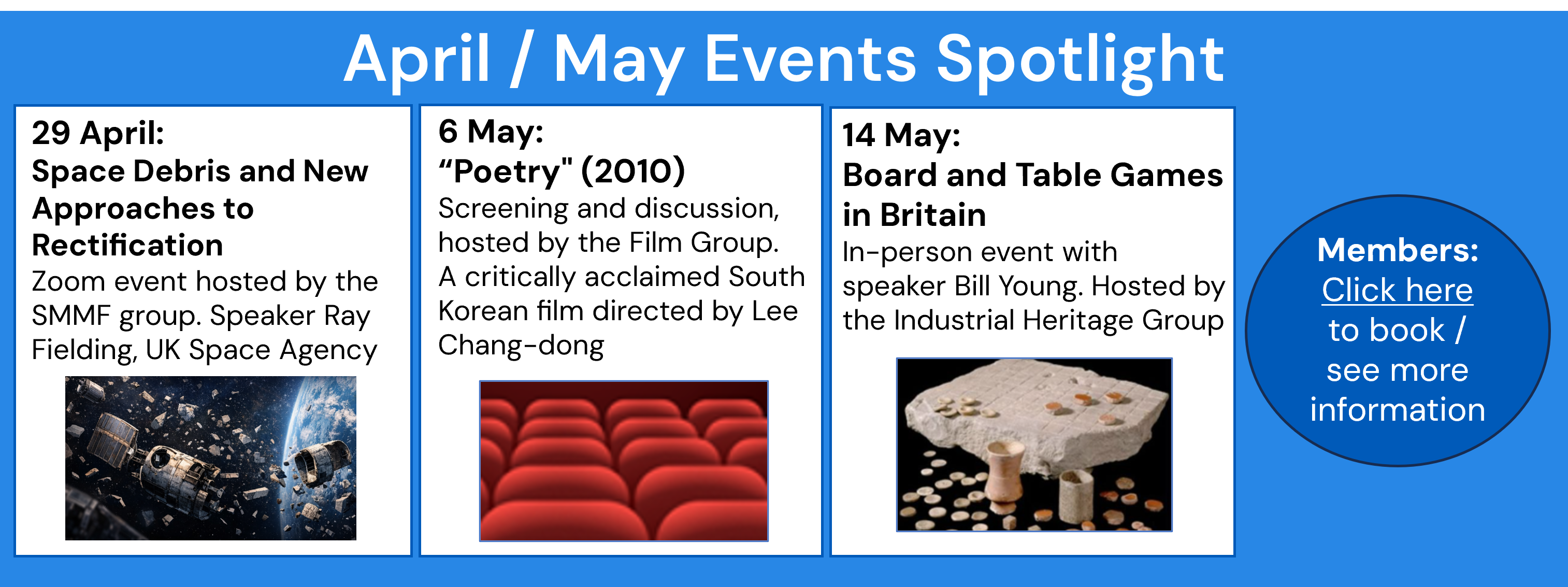 - Facebook Group: Join our private, members’ only Facebook Group, where our members can keep in touch with other members, share news about their activity and interest groups, exchange information, views and photographs.
